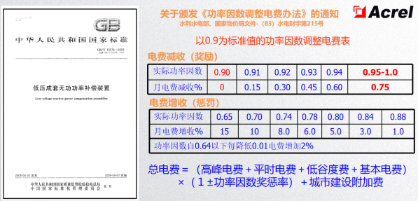 According to the notice on the "Method of Adjusting Electricity Fees Based on Power Factor", it is not difficult to find that the power factor adjustment rules take 0.9 as the standard value. By increasing the power factor, users can reduce their total electricity fees. Additionally, distribution users with a power factor higher than 0.9 may also receive rewards from the power company for power factor adjustment. Through reasonable compensation, the power factor at the measurement point can be adjusted to meet national standards, which can eliminate power factor charges and significantly reduce electricity costs for power users.